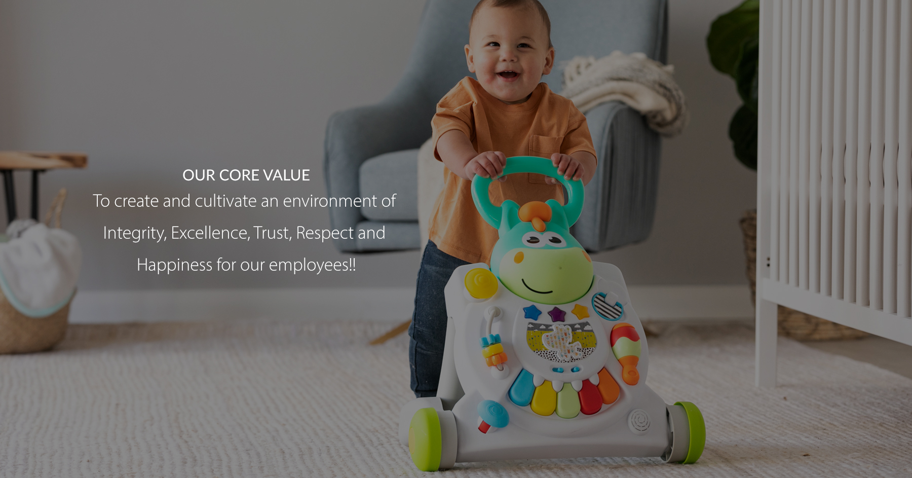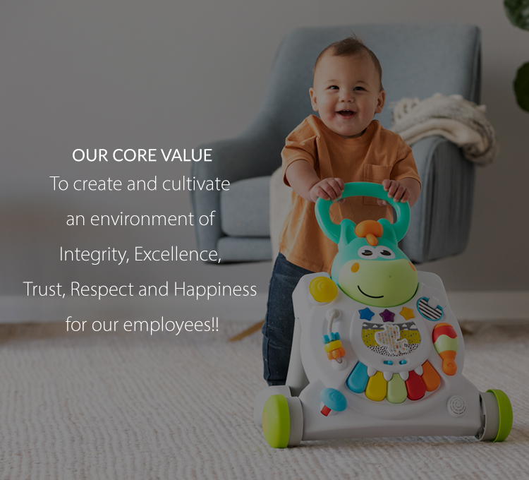 We design and produce a wide range of popular baby products toward 24/7 baby daily cycle. We strive to provide better and safer innovative products that bring laughter, learning, and fun to kids all over the world. Each product is carefully created with love. Every toy has been thoughtfully designed for parents and their children to spend quality time together. They explore, enjoy, and share lovely moments during playtime. The happiness and well-being of kids are our prime concern. We believe that kids should simply do what they do best – be playful and be happy!